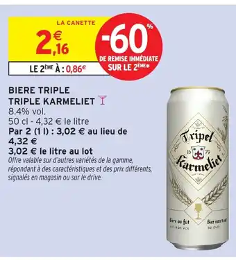 Actuellement en offre chez Intermarché Hyper : TRIPLE KARMELIET Biere ✅ Valable du 3-03 au 15-03.