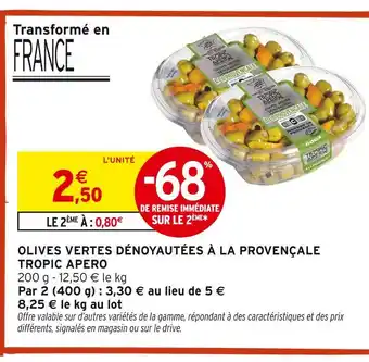 Tropic apéro olives vertes dénoyautées à la provençale offres et promotions en ligne chez Intermarché Hyper