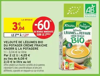 VELOUTÉ DE LÉGUMES BIO DU POTAGER CRÈME FRAICHE KNORR & LA POTAGERE : offres et promos Intermarché Hyper à découvrir