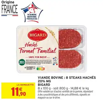 Viande bovine 8 steaks hachés 20% mg bigard 800 g