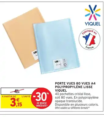 Actuellement en offre chez Intermarché Hyper : VIQUEL Porte vues 80 vues a4 polypropylène lisse ✅ Valable du 10-02 au 22-02.