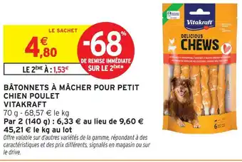 Offre Vitakraft bâtonnets à mâcher pour petit chien poulet chez Intermarché Hyper