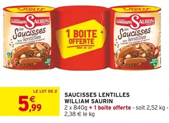 Actuellement en offre chez Intermarché Hyper : William saurin saucisses lentilles ✅ Valable du 13-01 au 25-01.