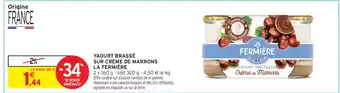 Actuellement en offre chez Intermarché Hyper : YAOURT BRASSÉ SUR CRÈME DE MARRONS LA FERMIÈRE ✅ Valable du 27-01 au 8-02.