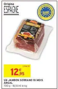 1/4 JAMBON SERRANO 10 MOIS ARGAL offres et promotions en ligne chez Intermarché