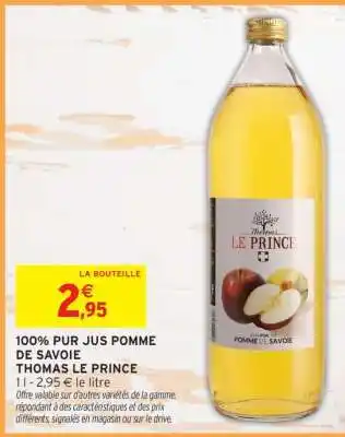 Actuellement en offre chez Intermarché : 100% PUR JUS POMME DE SAVOIE THOMAS LE PRINCE ✅ Valable du 14-04 au 19-04.