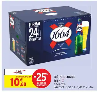 Actuellement en offre chez Intermarché : 1664 bière blonde ✅ Valable du 24-02 au 8-03.