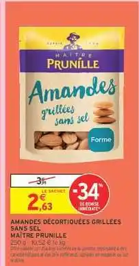 Amandes décortiquées grillées sans sel MAITRE PRUNILLE : offres et promos Intermarché à découvrir