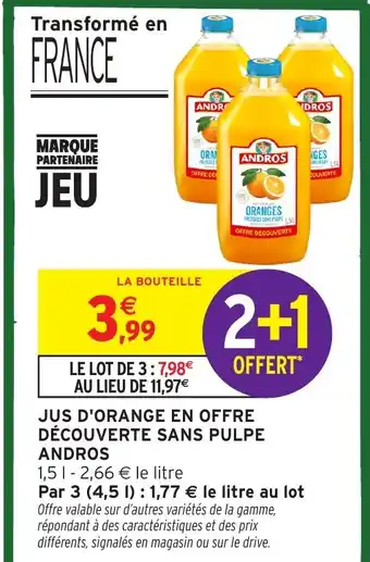 Actuellement en offre chez Intermarché : ANDROS Jus d'orange en offre découverte sans pulpe ✅ Valable du 13-01 au 25-01.
