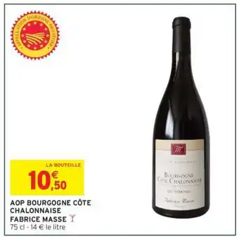 Actuellement en offre chez Intermarché : AOP BOURGOGNE CÔTE CHALONNAISE FABRICE MASSE ✅ Valable du 17-02 au 22-02.