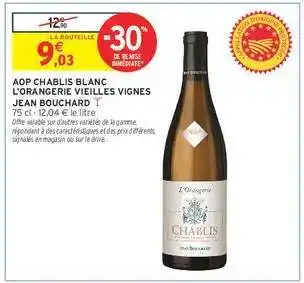 AOP CHABLIS BLANC L'ORANGERIE VIEILLES VIGNES JEAN BOUCHARD : offres et promos Intermarché à découvrir