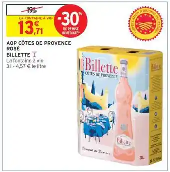 Actuellement en offre chez Intermarché : AOP CÔTES DE PROVENCE ROSÉ BILLETTE ✅ Valable du 21-04 au 3-05.