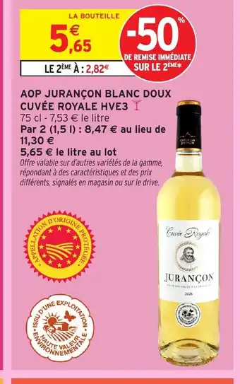 Actuellement en offre chez Intermarché : Aop jurançon blanc doux cuvée royale hve3 ✅ Valable du 24-03 au 6-04.