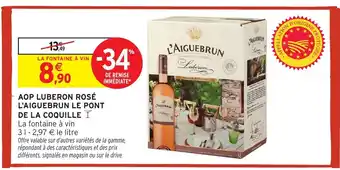 Actuellement en offre chez Intermarché : Aop luberon rosé l'aiguebrun le pont de la coquille y ✅ Valable du 13-01 au 25-01.
