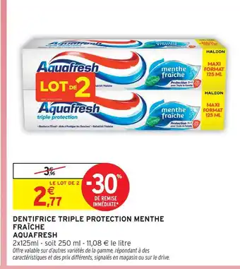 Offre Aquafresh dentifrice triple protection menthe fraîche chez Intermarché