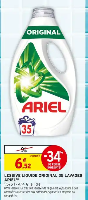 Actuellement en offre chez Intermarché : Ariel lessive liquide original 35 lavages (b) ✅ Valable du 30-12 au 11-01.