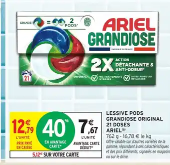Actuellement en offre chez Intermarché : ARIEL Lessive pods grandiose original 21 doses ✅ Valable du 30-12 au 11-01.