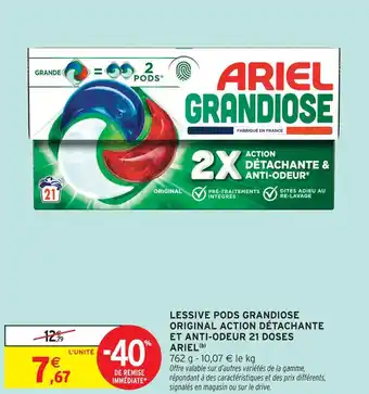 Actuellement en offre chez Intermarché : Ariel lessive pods grandiose original action détachante et anti-odeur 21 doses ✅ Valable du 17-02 au 1-03.