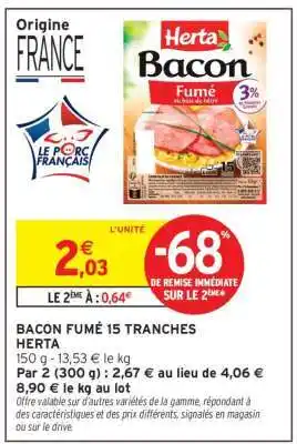 Bacon Fumé 15 Tranches Herta : offres et promos Intermarché à découvrir