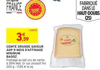Actuellement en offre chez Intermarché : Badoz comté grande saveur aop 9 mois d'affinage minimum ✅ Valable du 3-03 au 15-03.