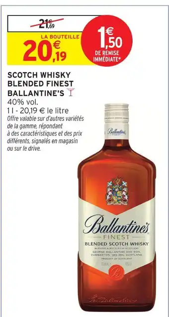 Actuellement en offre chez Intermarché : Ballantine's scotch whisky blended finest ✅ Valable du 17-02 au 1-03.