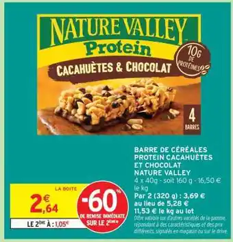BARRE DE CÉRÉALES PROTEIN CACAHUÈTES ET CHOCOLAT NATURE VALLEY offres et promotions en ligne chez Intermarché