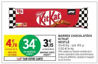 Offre BARRES CHOCOLATÉES KITKAT NESTLÉ chez Intermarché