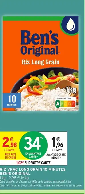 Actuellement en offre chez Intermarché : BEN'S ORIGINAL Riz vrac long grain 10 minutes ✅ Valable du 17-03 au 29-03.