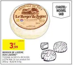 BERGER DE LOZÈRE DUO LOZÈRE offres et promotions en ligne chez Intermarché