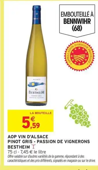 BESTHEIM Aop vin d'alsace pinot gris - passion de vignerons offres et promotions en ligne chez Intermarché