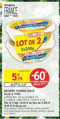 Actuellement en offre chez Intermarché : Beurre Tendre Doux Elle & Vire ✅ Valable du 3-02 au 15-02.