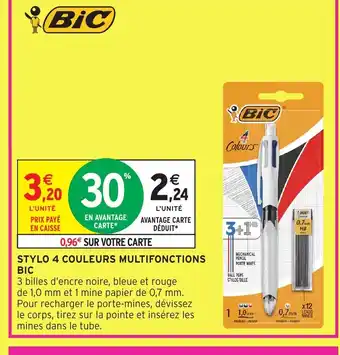 Offre BIC Stylo 4 couleurs multifonctions chez Intermarché