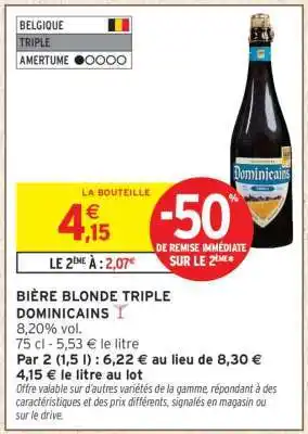Actuellement en offre chez Intermarché : BIÈRE BLONDE TRIPLE DOMINICAINS ✅ Valable du 27-01 au 8-02.