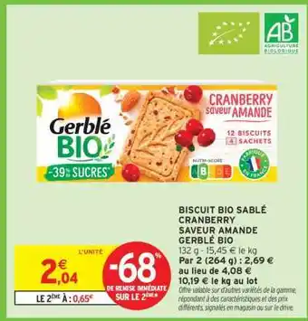 Actuellement en offre chez Intermarché : Biscuit Bio Sablé Cranberry Saveur Amande ✅ Valable du 27-01 au 8-02.
