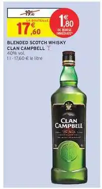 Actuellement en offre chez Intermarché : BLENDED SCOTCH WHISKY CLAN CAMPBELL ✅ Valable du 3-02 au 15-02.