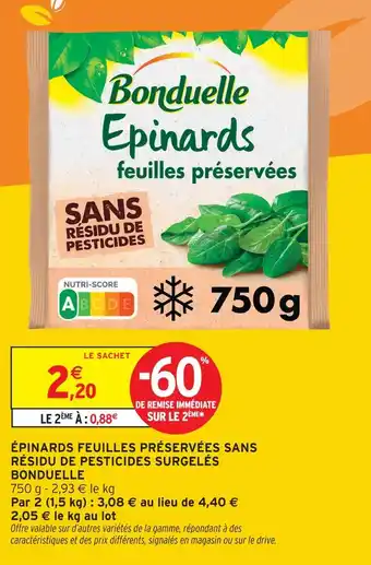 Bonduelle épinards feuilles préservées sans résidu de pesticides surgelés : offres et promos Intermarché à découvrir