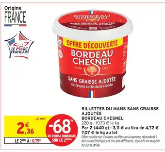 Actuellement en offre chez Intermarché : Bordeau chesnel rillettes du mans sans graisse ajoutée ✅ Valable du 21-04 au 3-05.