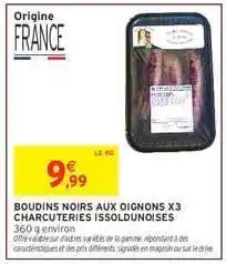 Actuellement en offre chez Intermarché : BOUDINS NOIRS AUX OIGNONS X3 CHARCUTERIES ISSOLDUNOISES ✅ Valable du 3-03 au 15-03.