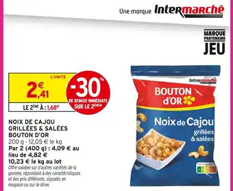 Bouton d'or noix de cajou grillées & salées offres et promotions en ligne chez Intermarché