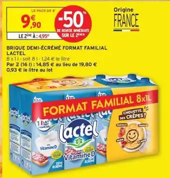 BRIQUE DEMI-ÉCRÉMÉ FORMAT FAMILIAL LACTEL offres et promotions en ligne chez Intermarché