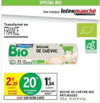 BÛCHE DE CHÈVRE BIO PÂTURAGES : offres et promos Intermarché à découvrir