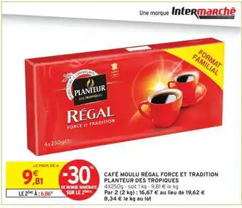 Offre CAFÉ MOULU RÉGAL FORCE ET TRADITION PLANTEUR DES TROPIQUES chez Intermarché