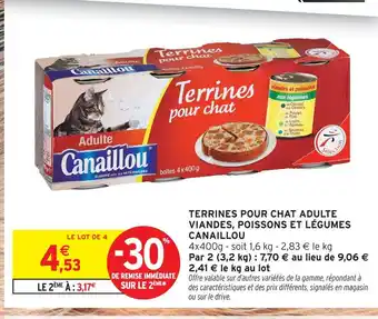 Offre Canaillou terrines pour chat adulte viandes, poissons et légumes chez Intermarché