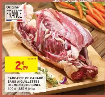 Actuellement en offre chez Intermarché : CARCASSE DE CANARD SANS AIGUILLETTES DELMOND L'ORIGINEL ✅ Valable du 27-01 au 1-02.