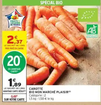 Actuellement en offre chez Intermarché : CAROTTE BIO MON MARCHÉ PLAISIR ✅ Valable du 17-02 au 1-03.