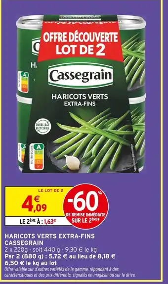 Actuellement en offre chez Intermarché : Cassegrain haricots verts extra-fins ✅ Valable du 6-01 au 18-01.