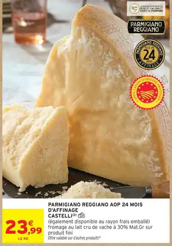 Actuellement en offre chez Intermarché : Castelli parmigiano reggiano aop 24 mois d'affinage ✅ Valable du 21-04 au 3-05.