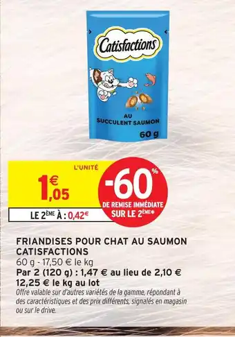 Actuellement en offre chez Intermarché : Catisfactions friandises pour chat au saumon ✅ Valable du 24-02 au 8-03.