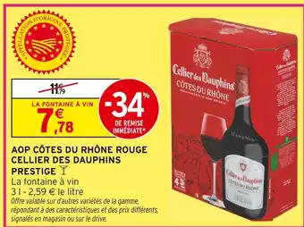Offre Cellier des dauphins aop côtes du rhône rouge prestige chez Intermarché
