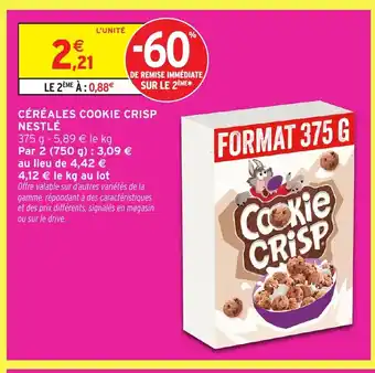 Actuellement en offre chez Intermarché : Céréales cookie crisp nestlé ✅ Valable du 30-12 au 11-01.